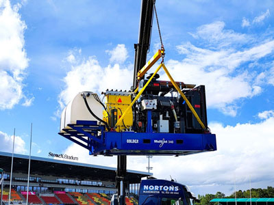 The Offshore Europe exhibition coupled with the Water Jetting Trade Show illustrate the breadth of the Calder range. We design and manufacture pump systems for high pressures and hazardous areas and serve a large variety of industrial sectors. So, you will see our units at the side of motorways undertaking hydrodemolition works, in refineries for tank and pipe cleaning, in shipyards for surface preparation, and on offshore platforms for process and well service applications. They can also be found on boats as net cleaning units and ships to inject green fuels for marine propulsion.